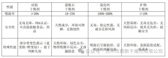 选干燥剂前,先明确3个关键指标:吸湿能力、安全性、特性,以下是直观对比: